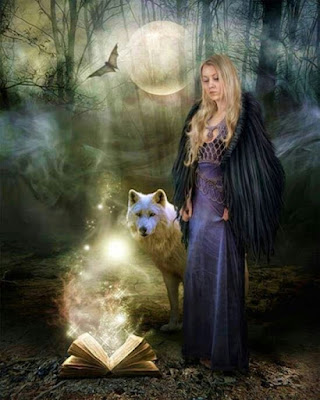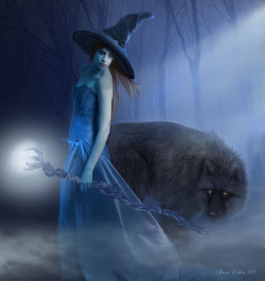 Night Spellcasting With the Beautiful Witch and Her Wolf Familiar